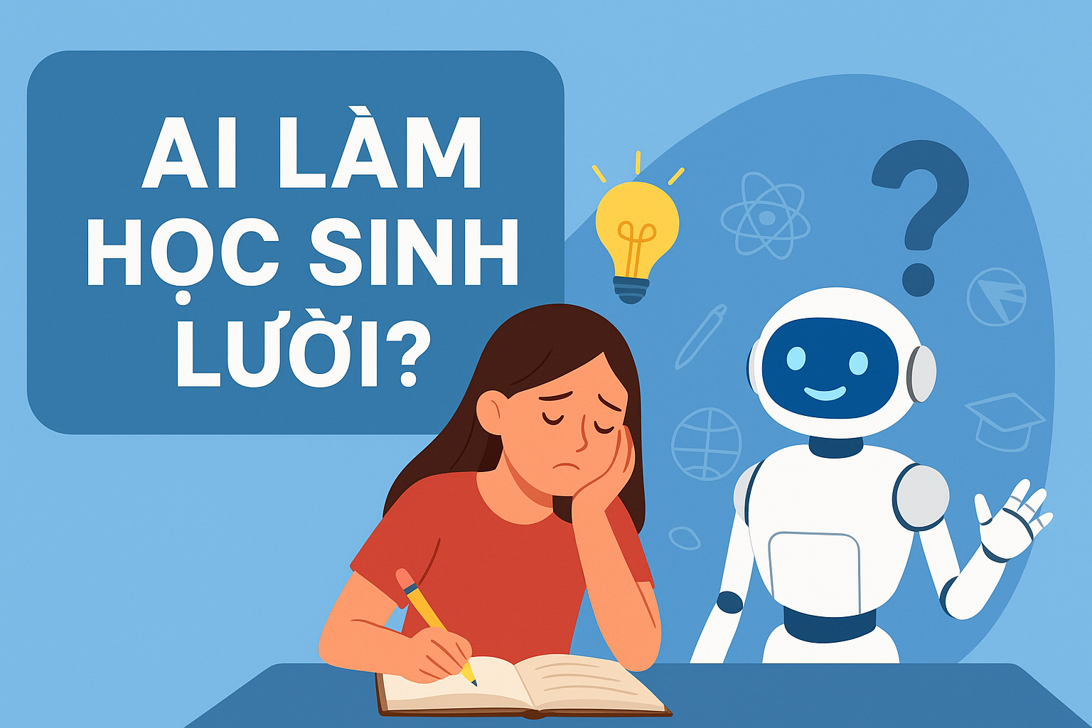Sự xuất hiện của trí tuệ nhân tạo (AI) đã tạo nên bước ngoặt lớn trong giáo dục hiện đại. Chỉ với vài cú nhấp chuột, học sinh có thể nhận được đáp án chi tiết cho bất kỳ bài toán hay câu hỏi nào. AI giúp tiết kiệm thời gian, mang đến nguồn kiến thức khổng lồ và hỗ trợ học tập mọi lúc, mọi nơi. Tuy nhiên, điều này cũng làm dấy lên lo ngại rằng học sinh sẽ trở nên ỷ lại, thiếu kỹ năng tự học và tư duy phản biện – những năng lực quan trọng cho tương lai.